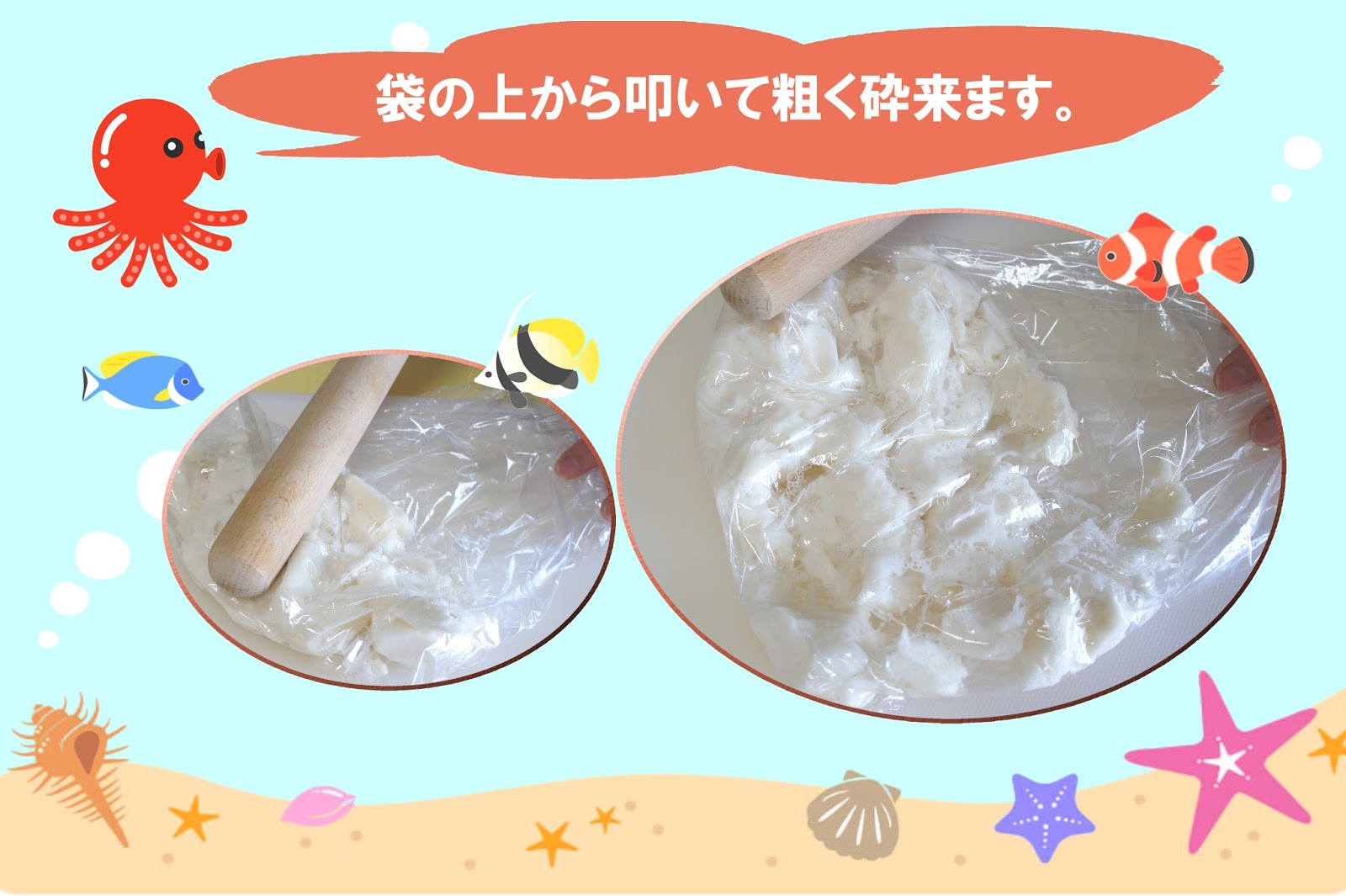 ②ジャガイモは皮をむいて食べやすい大きさに切り、濡らしたキッチンペーパーをしいた耐熱皿にのせ、上からも濡らしたキッチンペーパーを被せ、ふんわりラップをして電子レンジ600㍗で4分加熱します。